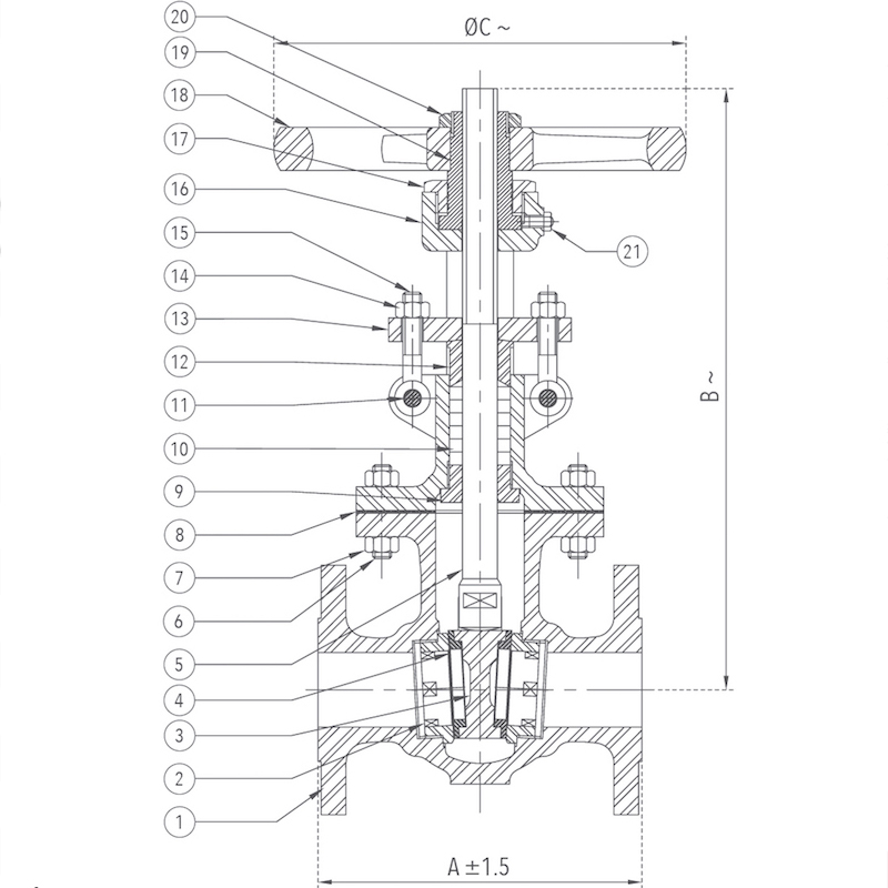 | 20 | Handwheel Nut | Carbon Steel | – – – | 1 |
