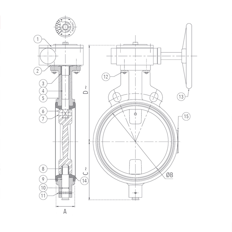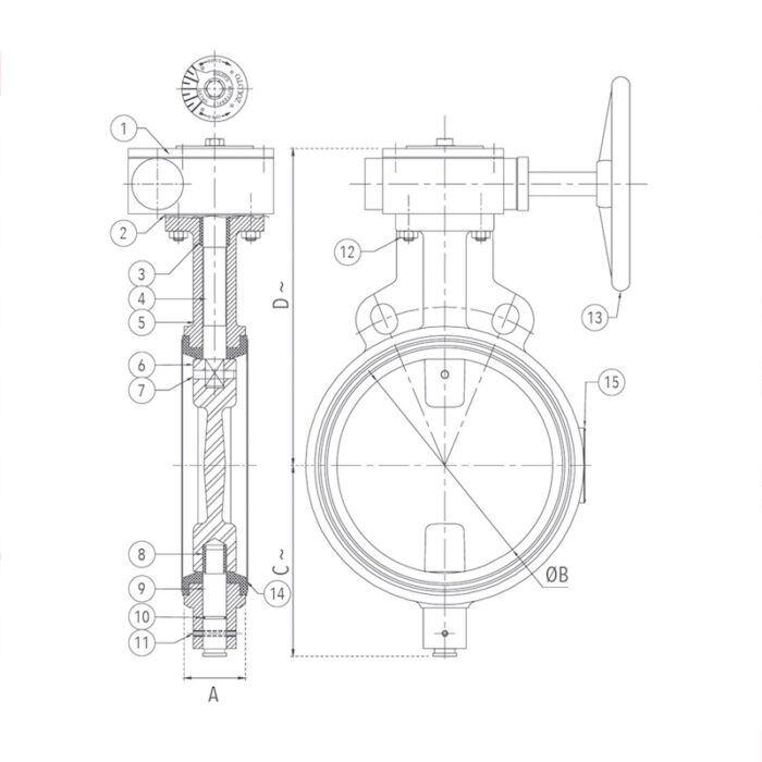 1078A Butterfly Valve (Wafer Type) PN 1.6 with S.G Iron Disc - Gear Operated